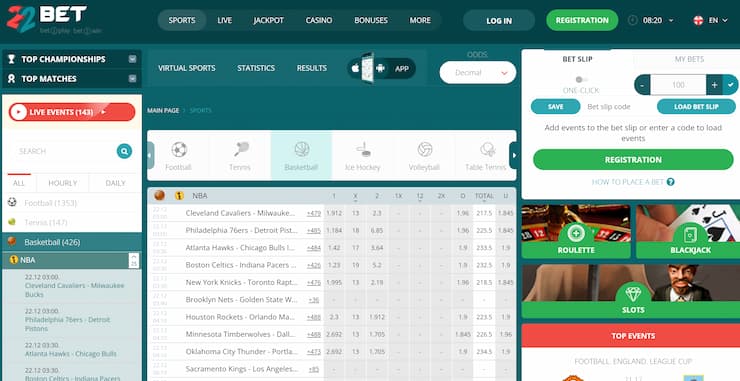 , tennis, basketball, and much more. With over 150 football markets alone, you’ll have plenty of choices! NBA online betting, But that’s not all—22Bet also features live basketball betting along with complete and partial cashouts for in-play betting, making it easy to keep up with the action. If you're always on the move, 22Bet offers mobile apps for both Android and iOS.